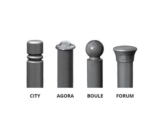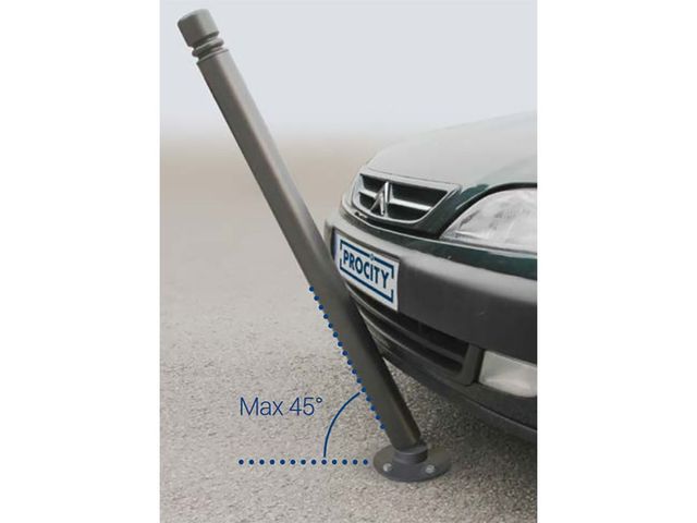 “ Livraison sous 4 semaines Potelet en acier amortichoc inclinable jusqu’à 45° Accepte la poussée d'un véhicule et reviens en position initiale Fixation au sol par étrier de scellement fourni Hauteur de 1050 mm - Ø 76 mm - 4 pommeaux au choix ”