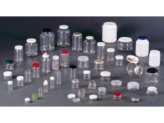 Matériau : Polyéthylène téréphtalate (copolymère de polyester)Contenances : 50 ml à 5000 mlFormes : rondes, carrées, hexagonales, octogonalesCouleurs : blanc ou naturelBouchons : plastique ou aluminiumAutres caractéristiques : Poudreuse pour certains modèlesAutres caractéristiques : Bague d'inviolabilité pour certains modèlesAutres caractéristiques : Bec verseur ou pissette pour certains modèles