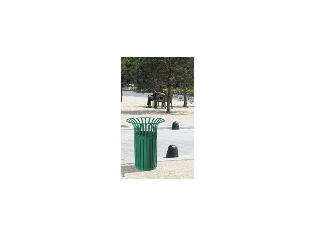Corbeille de ville en fer dotée d#039;un seau à déchets . Nombreux coloris au choix. Ce mobilier urbain est très commun dans toutes les villes de France, mais aussi dans les parcs et jardins publics, les aires de repos, sur les aires d#039;autoroute, squares, etc. Informations détaillées Structure en fer plat 2.5 x 0.4 cm Finition peinture au four coloris RAL 6005 (vert mousse) ou, en option, autres coloris standards RAL 3004 (rouge pourpre), 5010 (bleu gentiane), 7016 (gris anthracite) et 9005 (noir profond). Autres coloris hors standard, nous consulter Couvercle réducteur pour corbeille ronde en acier épaisseur 15/10e, diamètre 49 cm, diamètre intérieur 23.5 cm (en accessoires) Modèle standard avec seau : Capacité : 55 litres (seau) Équipée d’un seau amovible de diamètre 32 cm et d’un socle Vidage par seau amovible Verrouillage par batteuse et clé carrée Visserie pour fixation sur le socle fourni À poser ou à sceller Poids : 25 kg