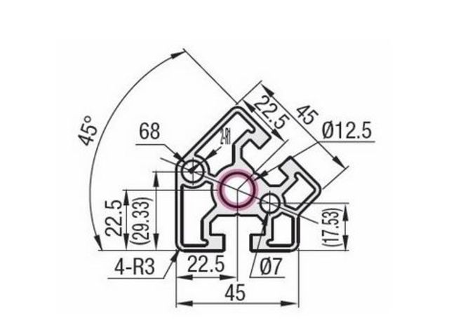 Profilé aluminium 45x45 angle de 45° - fente de 10 mm