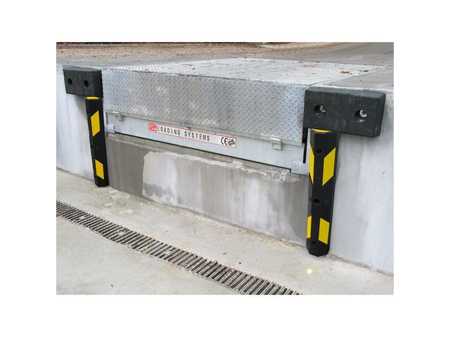 Heurtoir en polyuréthane à mémoire de forme pour la protection de quais de chargement, docks et autres installations sensibles aux chargements et déchargements répétés. il présente l'avantage de se déformer et d'absorber les chocs sans engendrer d'usure contrairement aux autres modèles en caoutchouc.