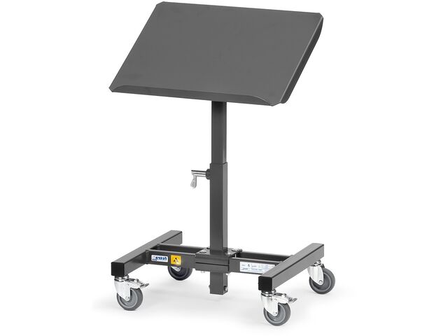 Pour utiliser le pupitre, réglez la hauteur selon vos besoins pour garantir un confort optimal. Assurez-vous que le plateau est incliné à un angle approprié pour une meilleure visibilité des composants. Toujours vérifier que les freins des roues sont engagés lorsqu'ils sont stationnés pour assurer la stabilité pendant l'utilisation.