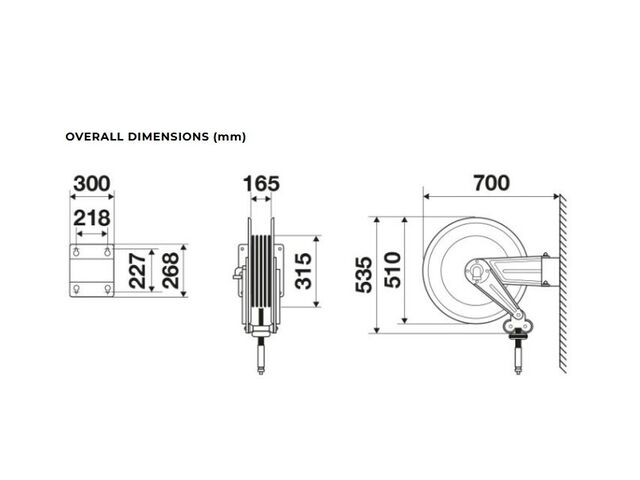Enrouleur huile 20 m ø 1/2 100 bars Acier Peint avec enroulement automatique et support mural pivotant Raasm RA.8550.412 - TORROS