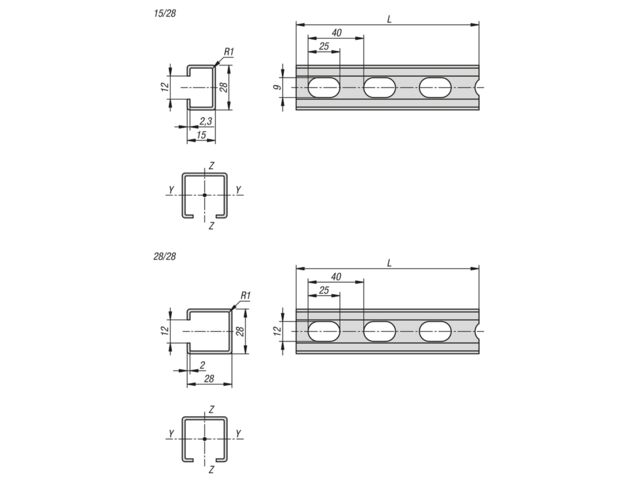 Les rails de montage à profil en C système 28 perforés de norelem sont conçus pour répondre aux besoins divers des industries. Leur structure robuste et fonctionnelle garantit une utilisation polyvalente. Ils sont idéaux pour les installations de montage et de fixation, qu'elles soient horizontales ou verticales, assurant une fixation fiable et flexible.