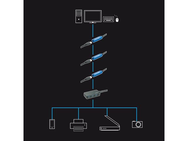 1. La connectivité étendue de 10 mètres vous permet de placer vos appareils USB 3.0 loin de votre ordinateur, une option parfaite pour les environnements où l'espace est limité et où il est difficile de déplacer les équipements lourds.