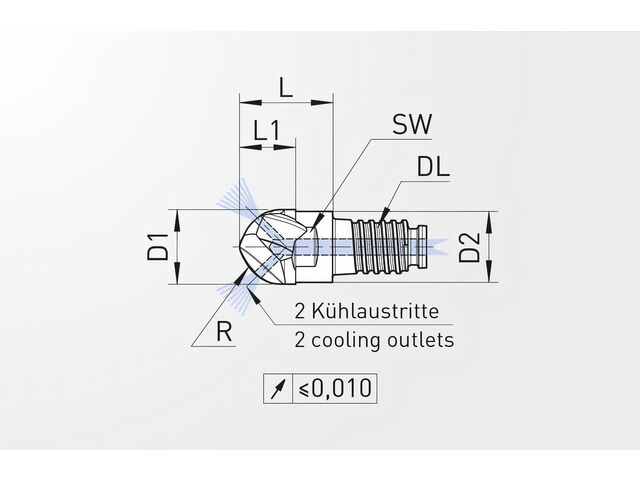 Veiller à vérifier la compatibilité entre la taille DL10 et votre porte-outil avant montage. Profiter du refroidissement interne en raccordant correctement le circuit réfrigérant pour préserver les propriétés du carbure. En cas de géométrie de pièce spécifique, n’hésitez pas à demander une extension sur mesure (L1, L2, angle W) afin de garantir un ajustement optimal et sécurisé.