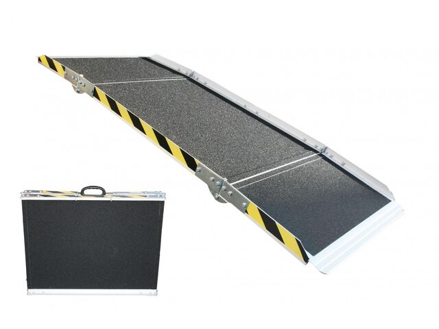 Cette rampe longue se replie en 3 sections jusqu'à atteindre un format compact de 1000 x 750 x 100 mm, ce qui permet de la transporter facilement dans une voiture.