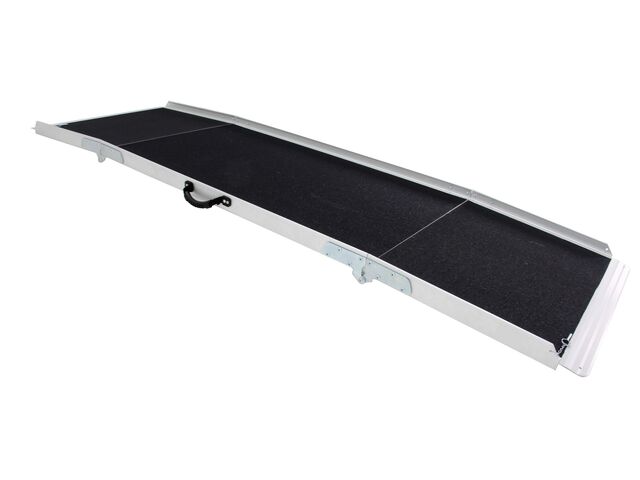 Cette rampe longue se replie en 3 sections jusqu'à atteindre un format compact de 1300 x 750 x 100 mm, ce qui permet de la transporter facilement dans une voiture.