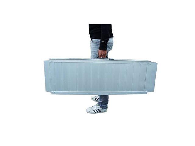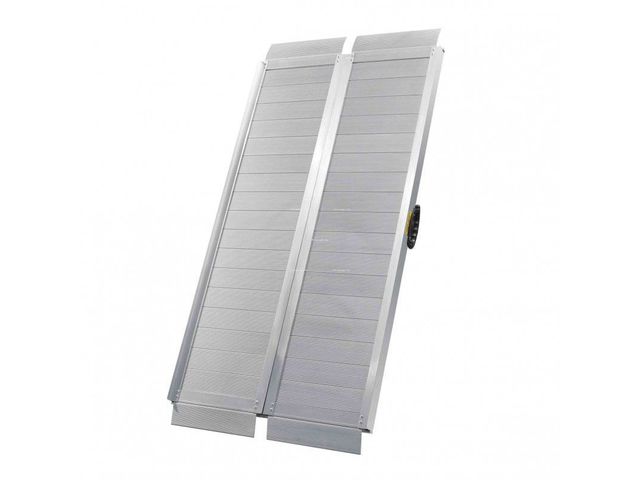 Découvrez la rampe d'accès pliable et transportable en aluminium, conçue pour améliorer l'accessibilité des personnes en fauteuil roulant. Sa conception robuste permet de supporter une charge maximale de 300 kg tout en offrant une solution pratique et adaptable. Idéale pour le passage des marches et l'accès aux différents bâtiments publics ou industriels.