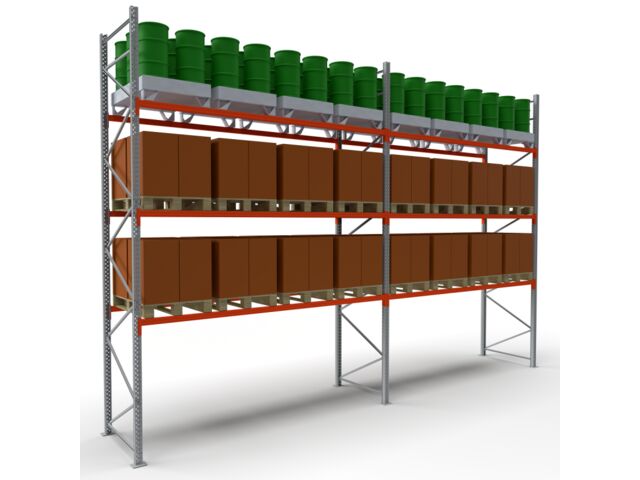 Ce modèle de rack industriel, d'une hauteur de 4500 mm est utilisé pour stocker des charges volumineuses ou lourdes palettisées ou non (caisses palettes, matières premières, fûts, IBC ...). La manutention des marchandises sur ce type de rayonnage s'effectue manuellement ou à l'aide d'un chariot de manutention. Les palettiers sont principalement installés dans des entrepôts. Cependant, ils pourront aussi trouver leur place dans les magasins pour le stockage d'articles ou dans les réserves. Attention ! Ces racks à palettes sont adaptés uniquement au stockage intérieur. De fabrication française, ce produit offre des qualités de robustesse, fiabilité et de sécurité. Ce rayonnage est garanti 3 ans. Ce rack de stockage industriel, de hauteur 4500 mm est conçu pour le stockage sur 3 niveaux de palettes 1200 mm x 800 mm ou 1200 mm x 1000 mm. Ce rayonnage est commercialisé dans les dimensions suivantes : - 5 longueurs : 1825, 2225, 2700, 3300, ou 3600 mm - 1 profondeur : 1100 mm - 1 hauteur : 4500 mm - 3 niveaux de stockage (4 niveaux de stockage avec le sol) - réglage des niveaux au pas de 50 mm.Avantage de ce produit : Les échelles de notre rack sont assemblées en usine pour : - une installation encore plus simple et rapide (jusqu'à 60 % de temps d'assemblage en moins) - une organisation sereine de votre montage sur site. - éviter les erreurs d'assemblage.Capacité de charge par niveau (Charge Uniformément Répartie) Longueur 1825 mm : 2000 kg / niveau, soit 2 palettes de 1000 kg. 8 palettes stockées par travée Longueur 2225 mm : 1980 kg / niveau, soit 2 palettes de 1000 kg. 8 palettes stockées par travée Longueur utile 2700 mm : 2400 kg / niveau, soit 3 palettes de 800 kg. 12 palettes stockées par travée Longueur utile 3300 mm : 2850 kg / niveau, soit 3 palettes de 950 kg. 12 palettes stockées par travée Longueur utile 3300 mm : 2400 kg / niveau, soit 4 palettes de 600 kg. 16 palettes stockées par travée.Rappel : Modulable, ces rayonnages à palettes sont commercialisés sous la forme de kit, DEPART et SUIVANT. Un élément de départ est composé de deux échelles, il peut être installé directement. Un élément suivant n’est composé que d’une seule échelle. Il doit être rattaché à un élément de départ. En supprimant une échelle sur le module départ + suivant, vous économisez plus de 30% par rapport à un élément de départ.Dans votre kit tout est inclus : - les échelles assemblées (2 échelles pour un élément de départ et une échelle pour un élément suivant) - goupilles de sécurité - fixation au sol - plaque de charge (départ) - platine de calage.Accessoires disponibles : - Sabot de protection. Les sabots de protection sont utilisés pour éviter la déformation des échelles lors de chocs frontaux. Hauteur 400 mm. RAL 1028. - Protection latérale. Les protections latérales protègent les échelles en évitant leur déformation en cas de choc (recommandé lors de l'utilisation d'engins de chantier). Hauteur 400 mm. Longueur 1100 mm. RAL 1028. - Platelage fil électrozingué. Livré en, plusieurs modules. Platelage fil de diamètre 5 mm, maille 50 x 100 mm. 800 kg par module. - Entretoises de jumelage. Nécessaire en cas de rack mis dos à dos.Sécurité et confort : Ce rayonnage à palettes est conforme aux normes EN15512, EN15635, EN 15620, EN 15629 et EN15878, afin de vous garantir une entière sécurité et une excellente qualité. Les essais et les méthodes de calcul sont certifiés par le bureau de contrôle DEKRA. Les normes et recommandations permettent de valider la fabrication des produits conformément aux critères de conception et de résistance définis. Les protections sont indispensables aux extrémités et intersections d'allées. Sur mesure : Grâce à notre bureau d'études, nous sommes en mesure de concevoir la configuration qui répondra aux exigences précises de chaque utilisateur. Au delà des contraintes techniques et dimensionnelles aucune limite s'impose à votre projet.Sabots de protection en acier, protection des échelles à mémoire de forme, barrières et glissières, consultez notre gamme complète de protection de rayonnage à palettes.