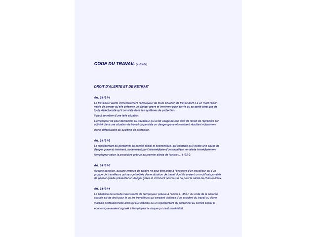 “ Le registre R-DGI.cse, spécifique "Comité Social et Economique" permet l'enregistrement de 39 constats de danger grave et imminent. Il permet d'enregistrer le n° du constat, ( une page par constat, 39 constats possibles) , les date et heure du constat, le lieu du constat, les noms du ou des agents exposés au danger constaté, la description de danger grave et imminent constaté et visa ainsi que lle nom et la fonction du représentant de l'autorité qui a été alerté et visa , les mesures prises pour supprimer ou éviter le danger. - Visas ( autorité compétente ou représentant, agent(s) exposé(s), CSE, CSSCT, représentant du personnel ...) Renseignements techniques Le GENCOD du R-DGI.cse 9782910833992, Editeur: GUILLARD , Format : A4 , Nombre de pages : 40, avec perforation 4 trous standards ( pour mise en classeur , non fourni ) ”