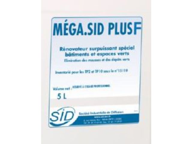 MÉGA.SID PLUS F est un destructeur de dépôts verts (Bryophyta), spores, lichens, champignons, algues se trouvant sur les murs, toitures et tout ouvrage de maçonnerie (terrains de sport, tennis, terrasses, façades, mobiliers publics…). Il est formulé de manière à être très efficace sur la plupart des matériaux tels que : brique, ardoise, ciment, pierre, surfaces peintes, bois, revêtements synthétiques, etc...