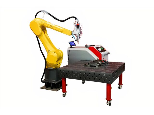 Puissance laser : 6000WPrécision de repositionnement : ±0,03mmTête laser : WSX ND60B tête de soudage laser wobbleSystème de refroidissement : Hanli 6000WSystème robot : FANUC M-20iBSource laser : Max 6000W
