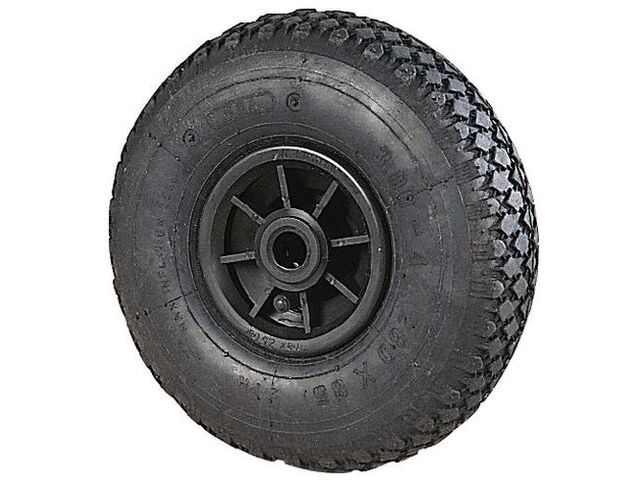 Roue pour diable à crampons moyeu lisse, ø: 260 mm, force: 150 kg, roue/roulette: roue, roue/roulette force (plage): 101 - 200 kg, roue/roulette diamètre (plage): 201 - 300 mm, type de bandage: pneumatique, bandage largeur: 85 mm, alésage ø: 20 mm, moyeu longueur: 75 mm, modèle: roue, profil: crampons, type de moyeu: lisse, coloris: noir, frein: non, poids: 1.1 kg, usage: manutention extérieur tout terrain, nb de plys: 2, corps de roue matériau: polypropylène