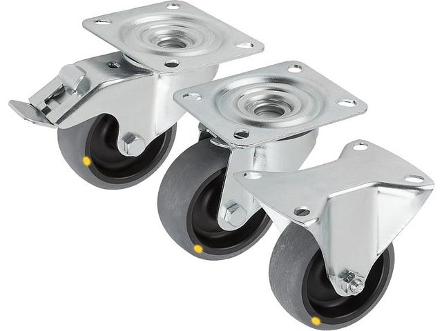 “ - Protègent contre les décharges électrostatiques - la résistance de ces composants s'élève à 104 Ω maximum - le bandage gris spécial en caoutchouc et élastomère thermoplastique de grande qualité, ne laisse aucune trace d'abrasion sur les sols et autres supports. - Se combinent avec les structures plus légères en profilé aluminium - Solution idéale pour le transport de machines et d'appareils, de palettes ou encore de plateformes de levage ”