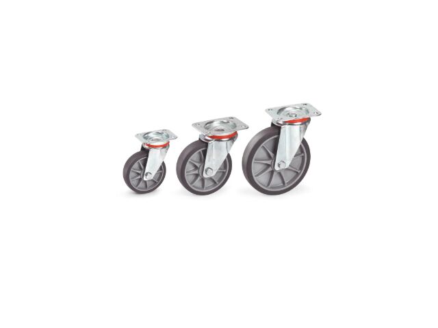 “ - Type de roues : 4 roues pivotantes avec moyeu à roulement à billes central - Sécurité des roues : 2 roues avec freins - Compatibilité bacs : Bacs plastiques norme Euro 600 x 400 mm ”