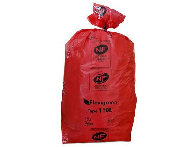 Sac poubelle spécial déchets dangereux, 110L, rouge, conçu pour le tri sélectif médical et les environnements nécessitant une gestion rigoureuse. Ce sac poubelle de haute qualité, issu d'une démarche éco-responsable, répond aux normes EN 13592 et offre une capacité généreuse de 96 litres. Il est idéal pour les professionnels de la santé, les laboratoires, et toute structure manipulant des déchets à risque.