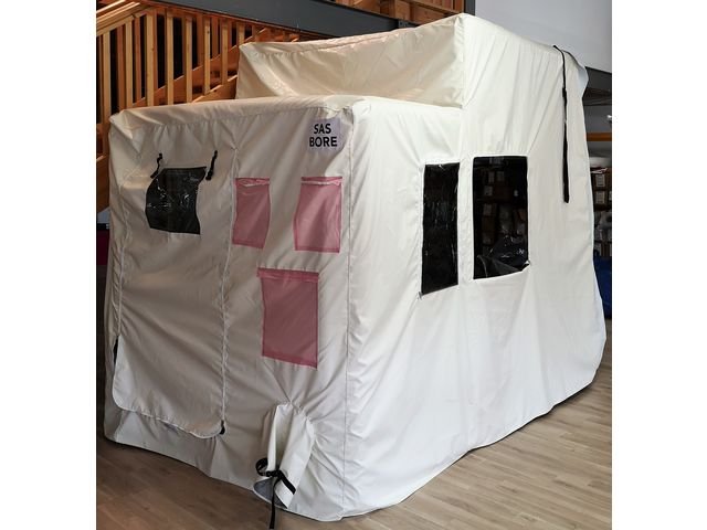 Dimensions sur mesureMatériaux souples et à faible pouvoir calorifiqueModules d'entrée et de sortie séparésAssistance prise de cotesAssistance première installationPossibilité de réparation ou changement de la structure et de la housseChoix des membranes de conception : classement feu euroclasse, résistance mécanique, ...Matériels complémentaires (passage de câbles, connecteur déprimogène, fenêtre cristal, porte documents, marquage spécifique, éclairage LED, trappe sur le toit, tapis de sol,...)