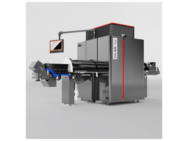 Le Mito B révolutionne l’inspection agroalimentaire grâce à sa tomodensitométrie 3D en ligne, premier système du marché capable de reconstruire des volumes 3D complets en temps réel sur convoyeur. Un portique rayons X tourne à 360° autour du flux produit pour acquérir une image volumique complète, détectant les corps étrangers quelle que soit leur position, orientation ou occlusion par d’autres éléments du vrac.