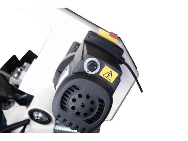 Convivialité : Dispose d'une butée de matériau réglable pour le travail en série et d'un bouton-poussoir sur le levier pour allumer et éteindre directement le ruban de scie