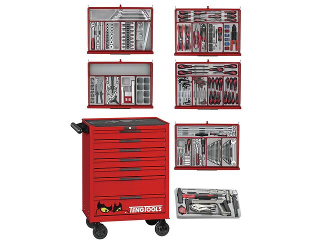 Servante d'atelier rouge 7 tiroirs mini master - 516 outils Teng Tools TKW26R516T - produit présenté par TORROS