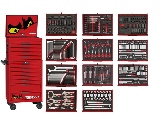 Servante d'atelier rouge haute 12 tiroirs - Mega Master - 528 pièces - rangement avec modules en mousse Teng Tools TKS26R528F - produit présenté par TORROS