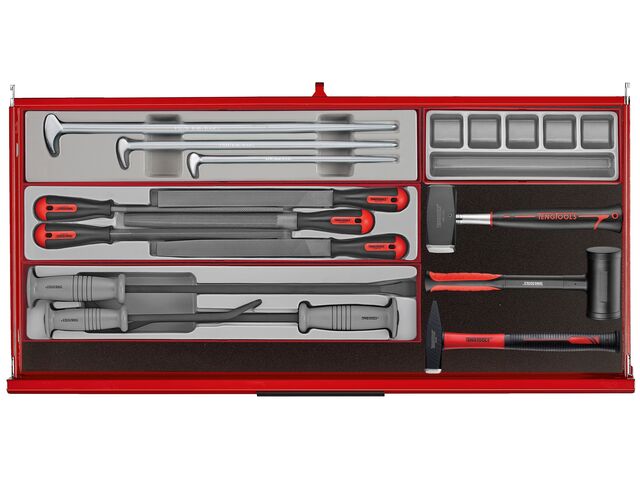 Cette servante d'atelier Midi Master Tools se compose d'un ensemble complet d'outils organisés selon le système unique Teng Tools, le tout rangé dans une servante large à 7 tiroirs.