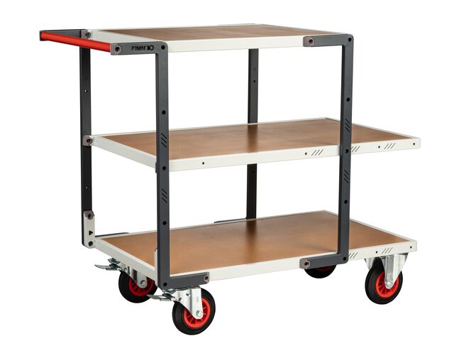 Conception robuste avec châssis en tube de 35 × 20 mm, renforts sous plateau et plateaux tôle encastrés. Dossier fixé au plateau par 3 points garantissant la longévité de l'assemblage dans le temps. Conception évolutive permettant de rajouter un plateau dans un second temps. Surface de pose optimisée grâce à une poignée positionnée dans l'alignement du plateau. Plateaux en tôle galvanisée réversible (face avec ou sans rebord de 16 mm) d'épaisseur 2 mm adaptés aux milieux corrosifs. Charge utile du plateau supérieur (et intermédiaire) limitée à 140 kg. Poignée ergonomique à hauteur, en tube Ø 28 mm pour une bonne prise en main. Les doubles poignées permettent une manipulation dans les 2 sens, idéal dans les espaces restreints. Roues caoutchouc pour sols lisses ou roues TPE montées sur roulement à billes (effort au démarrage réduit de plus de 50%, absorption des vibrations, silencieuses, non tachantes) Ø 160 mm, 2 roues fixes + 2 pivotantes à frein conformément à la norme EN 1757. Conception démontable facilitant la réparation. Composants disponibles sur stock.