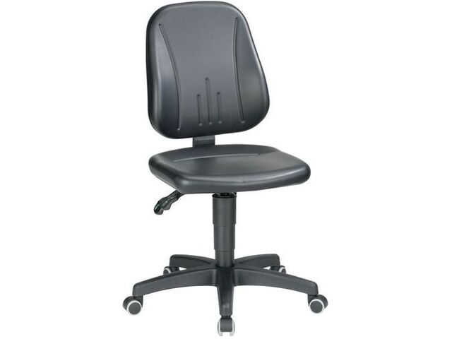Siège d'atelier bas bimos unitec, assise matériau: similicuir, dossier: oui, siège modèle: réglable, repose-pieds: non, assise hauteur mini: 440 mm, assise hauteur maxi: 620 mm, contact permanent: oui, coloris: noir, assise largeur: 460 mm, assise profondeur: 470 mm, dossier hauteur: 460 mm, type de piétement: central, technique asynchrone: oui, type de pied: roulettes, emballage recyclable: oui - 100 %, emballage recyclé: 80 %, produit recyclé: 55 %, approche éco-responsable: oui, réglage hauteur dossier: oui, réglage hauteur d'assise: oui