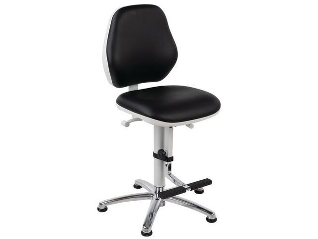 Siège pour salle blanche bimos 9141, assise matériau: similicuir, siège modèle: haut, repose-pieds: oui, assise hauteur mini: 590 mm, assise hauteur maxi: 860 mm, contact permanent: oui, coloris: noir, piétement matériau: aluminium, type de pied: patins, emballage recyclable: oui - 100 %, emballage recyclé: 80 %, produit recyclé: 52 %, approche éco-responsable: oui
