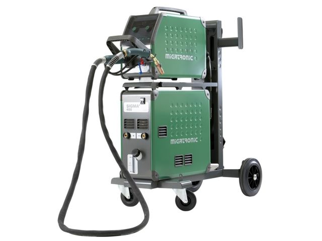Ce modèle de poste à souder MIG électrique est composé de deux sources à réglage numérique reliées par une liaison Local High Speed Bus qui génèrent ensemble une puissance de 900 A.