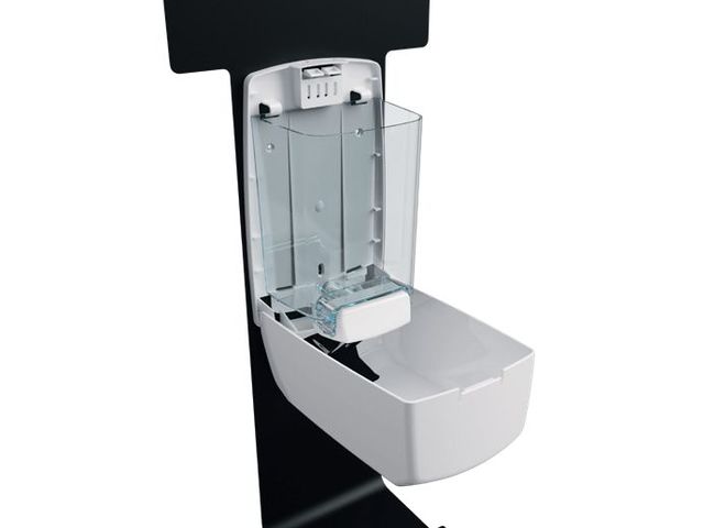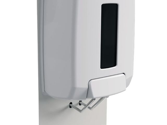 Design efficace et adaptable : Conçue pour être stable même dans les espaces réduits, grâce à ses pieds réglables, la station Sanimains est fabriquée en acier poudré anti-UV et est équipée d'une fenêtre de contrôle pour vérifier facilement le niveau de consommable.