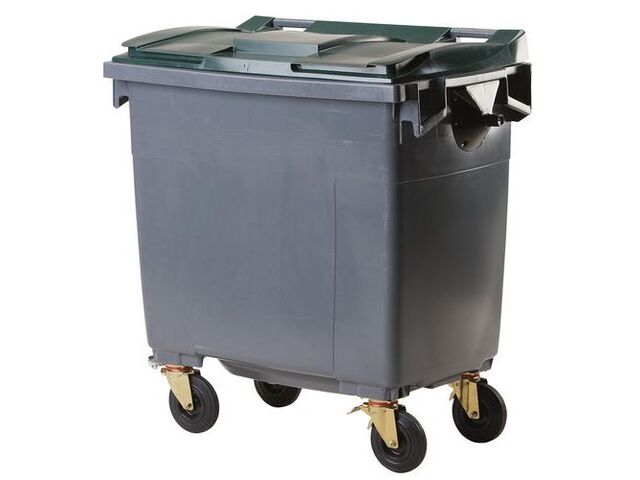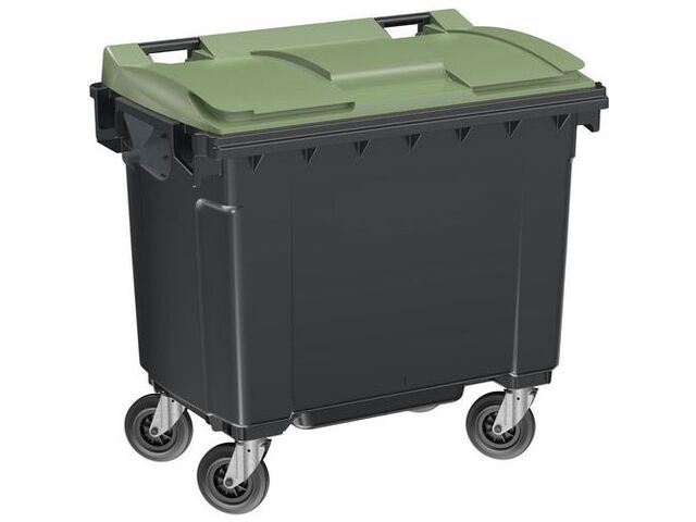 Le couvercle de couleur verte, distinctif et pratique, protège le contenu des intempéries et des nuisibles, tout en facilitant l'identification des différentes catégories de déchets si vous utilisez plusieurs conteneurs de couleurs variées. Les prises frontales et latérales offrent une manipulation aisée, et le système d'ouverture basculante simplifie le vidage.