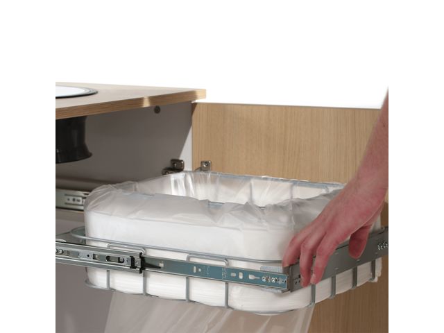 En plus, il est réglable en largeur et il peut donc être installé sans difficulté dans la plupart des armoires à déchets.