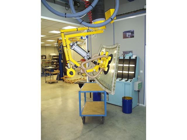 Basculement : 0-90° manuel ou pneumatiqueFonctionnement : électrique pneumatiqueForce maxi : 250 kgMontage : sur potence ou pont roulantComposants : groupe moteur turbineTube de levage : avec joint tournantPoignée : de commande rotativeVentouse : adaptée au produit