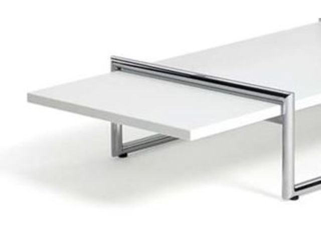 3. Le plateau inférieur coulissant en MDF laqué blanc offre une solution de rangement discrète et pratique, parfaitement adaptée pour organiser divers documents ou accessoires.