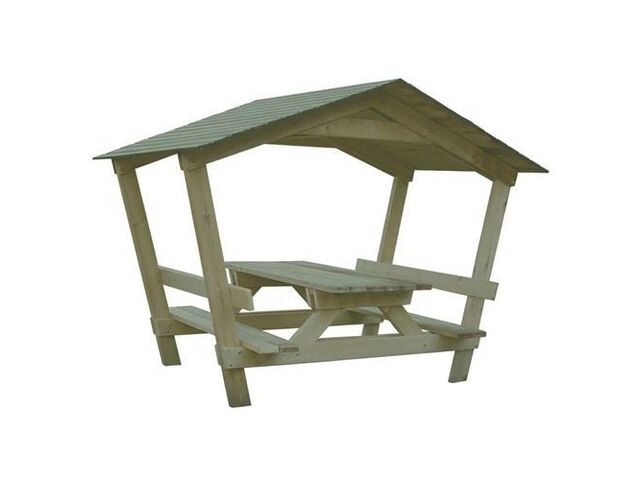 Découvrez la table-bancs Castor de 2 mètres, une solution d'ameublement extérieur idéale pour vos espaces verts, parcs, jardins publics ou campings. Conçue pour accueillir confortablement 8 personnes, cette table-bancs en pin massif est robuste et durable, parfaite pour partager des moments conviviaux en plein air. Sa conception ingénieuse avec un toit intégré offre une protection appréciable contre le soleil et les intempéries, prolongant ainsi la durée d'utilisation de vos espaces extérieurs.