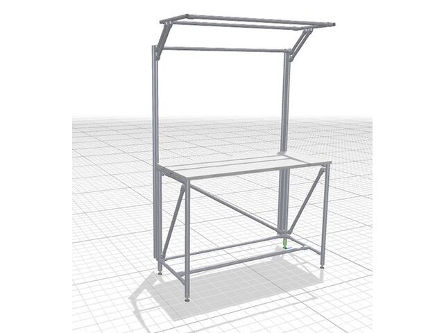 “ - Réalisée à partir du système de tubes profilés D30 - Structure de base réduite au minimum, tout en conservant sa stabilité - Capacité de charge de 150 kg - Possibilité d'adapter la hauteur, la largeur et la profondeur de la table de travail aux besoins - Colonne pouvant intégrer des supports d'objets ou d'autres profilés ”