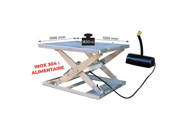 La table élévatrice électrique inox 304 d'ACR EQUIPEMENT est conçue pour répondre aux exigences des environnements industriels exigeants et humides. Avec sa capacité de charge impressionnante de 1 800 kg et sa construction en inox 304, elle est idéale pour les applications alimentaires. Son plateau spacieux et sa grande hauteur d'élévation facilitent le levage de charges lourdes en toute sécurité.