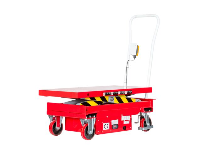 Table élévatrice électrique mobile 500 kg avec hauteur de levage 950 mm et table 1010 x 520 mm.