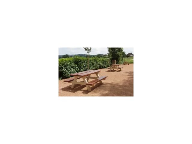 Table pique nique hexagonale pour enfant. Informations détaillées : Nombre de place : 6 Encombrement au sol : 150 cm Diamètre plateau : 100 cm Hauteur assise : 30 cm Plateau et assise en compact épaisseur 1,5 cm Pieds section 6,8 x 4,5 cm Livrée pré-montée autostable Visserie zinguée Modèle structure bois Essence pin du nord rouge origine Finlande et/ou Suède, catégorie 5, gage de stabilité et de haute résistance. Traitement autoclave sous pression, classe 4, solution aqueuse sans chrome ni arsenic