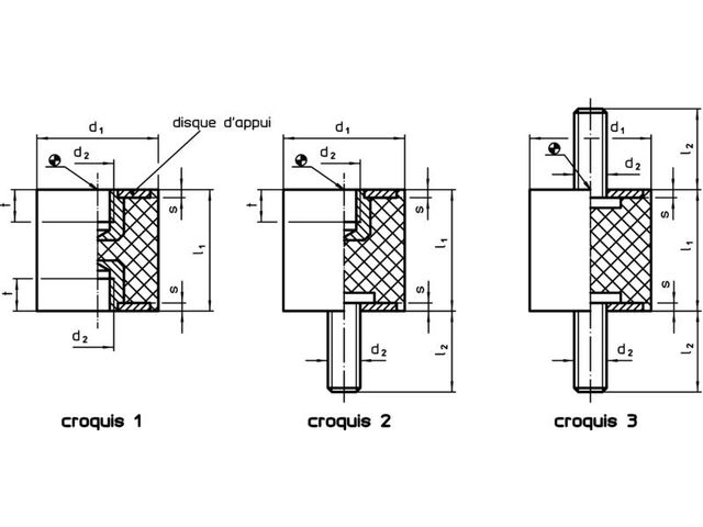 Voici quelques détailles techniques : * Dureté de 55 ±5° Shore A (possibilité d'autres duretés à la demande) * Température d'utilisation de -30 °C à +80 °C * Forme ronde * Composé de caoutchouc et acier * Poids variant entre 0.98 g et 515 g * Charge admissible, course et raideur variables en fonction de chaque référence * Dimensions personnalisables.