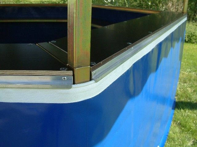 Dimensions: 4 x 3 m (surface au sol de 12 m²)Hauteur faîtage: 2,53 mHauteur parois: 2,08 mStructure: Acier 40x40/2 mm, galvanisé, finition argentéeBâche: PVC 650 g/m², ignifugée M2Coloris: Uni ou rayé au choix (blanc, champagne, crème, jaune, rouge, bleu clair, bleu foncé, vert clair, vert foncé, gris, noir)Double comptoir: Planche inférieure de 60 cm, planche supérieure de 30 cmAuvent: 1 m de large sur tout le pourtour