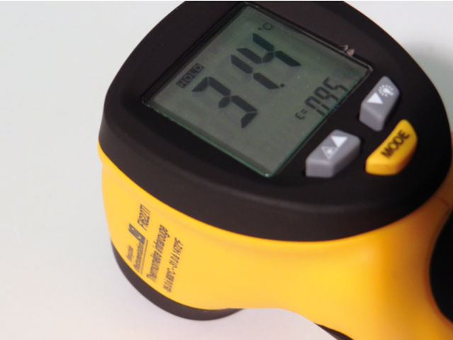 Plage de mesure : -35°C à +800°CVisée laser : Double faisceauRésolution : 0.1°CPrécision : ±3.5°C (-35°C à +20°C), ± (1% de la lecture + 1d) (+20°C à +300°C), ± (1,5% de la lecture + 1d) (+300°C à +800°C)Temps de réponse : 300 msAlimentation : 1 pile 9 V type 6LR61Dimensions : 82 x 160 x 42 mmPoids : 160 g
