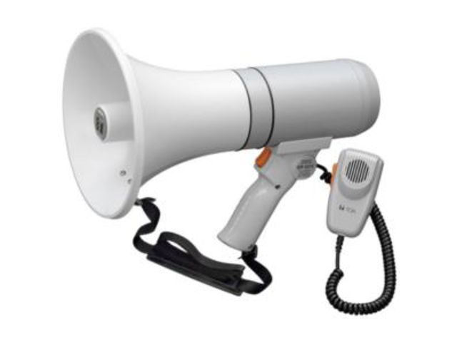 Mégaphone ER-1215 grande portéePorte-voix à main avec microphone déportéLe porte-voix Toa ER-1215 est idéal pour tout type de manifestation et également pour les services de sécurités, la police, les pompiers, ou les syndicats.Le mégaphone dispose d'une bonne qualité grâce à une large bande passante et d'un aimant néodyme qui lui assure une grande puissance. Le mégaphone ER-1215 possède également un microphone dynamique unidirectionnel anti-Larsen avec une touche parole.Le porte-voix ER-1215S est muni d'un microphone déporté, cela vous permettra de rester statique tout en dirigeant la portée de votre voix.Comme les autres mégaphones de la marque TOA, le porte-voix ER-1215 bénéficit d'un traitement anti-bactérien pour une hygiène et une sécurité renforcées.Caractéristiques techniques du porte-voix ER-1215Puissance admissible : 23 WPuissance nominale : 15 WPortée : 400 mètresFinition : résine ABS, pavillon gris clair, autre grisConception robusteRésistance accrueDiaphragme polyamidePiles (quantité / type) : 6 x 1.5 V (R14)Autonomie piles : 9 heuresDimensions : 210 x 291 x 381 mmPoids : 1.3 kg Présentation de la maque TOATOA est une marque japonaise  crée en 1934. Elle est actuellement leader mondial dans le domaine de la sonorisation professionnelle, et donc ici pour toute la gamme de mégaphones présentés. Les produits de la marque TOA sont très appréciés dans des univers comme les associations, les écoles ou encore dans des grandes manifestations ou un discours clair doit être présenté à une population importante.