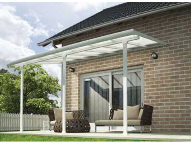 Dimensions : L 425 x P 295 x H 260 cmSurface : 12,60 m²Matériaux : Panneaux en polycarbonate, poteaux en aluminium laqué blancCouleur : BlancGarantie : 10 ansInclus : Gouttière, kit d'ancrageMontage : Système de clipsageProtection : Panneaux traités anti-UV