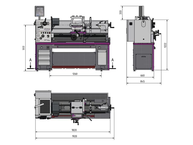Tour à métaux complet avec vis-mère et barre chariotage avec indication de position digitale DPA31 Plus sur 3 axes.