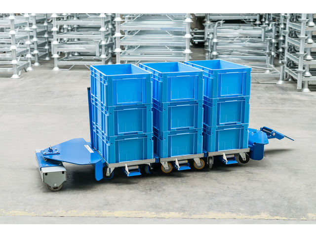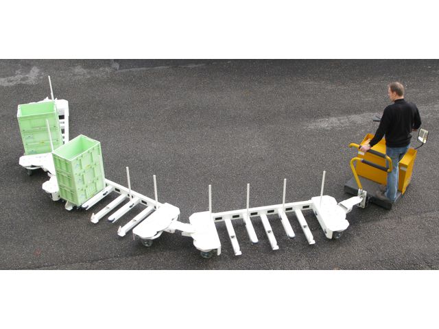 Système de train monotrace pour un approvisionnement optimal en bord de ligne. Chariot de manutention multi-bases pour le transport intralogistique de toutes vos charges, quelles que soient leurs dimensions.