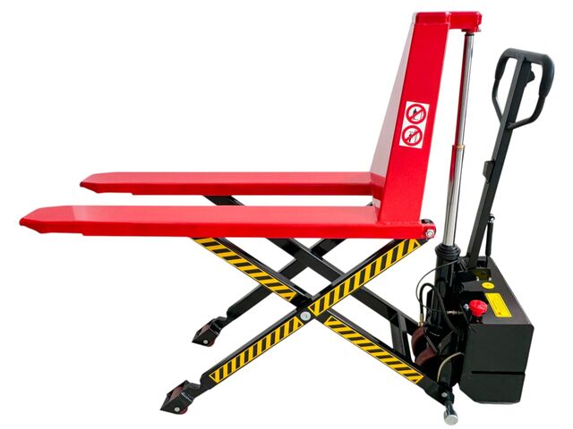 Transpalette à levage haut 1500 kg avec élévateur électrique et plage de levage de 800 mm.