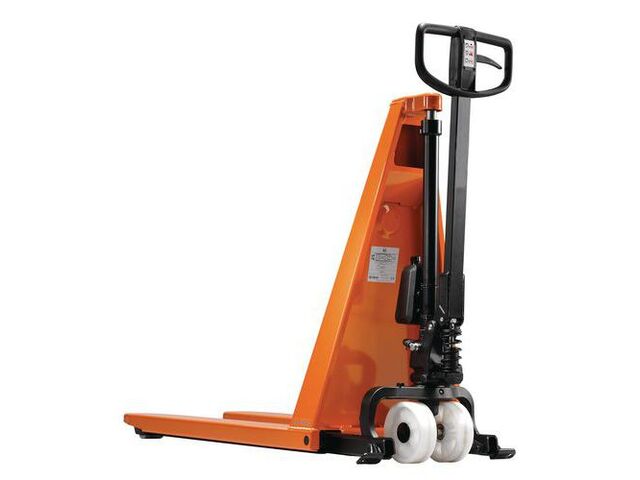 Transpalette manuel haute levée, force: 1000 kg, hauteur de levée maxi: 800 mm, roue directrice ø: 175 mm, roue de fourche ø: 85 mm, type de produit: hl10, roue de fourche matériau: nylon, roue directrice matériau: polyuréthane, fourche longueur: 1190 mm, fourches écartement ext.: 560 mm, poids du produit: 121 kg, fourche largeur: 160 mm, emballage recyclé: 50 %, roue directrice largeur: 60 mm, hauteur de levée mini: 88 mm